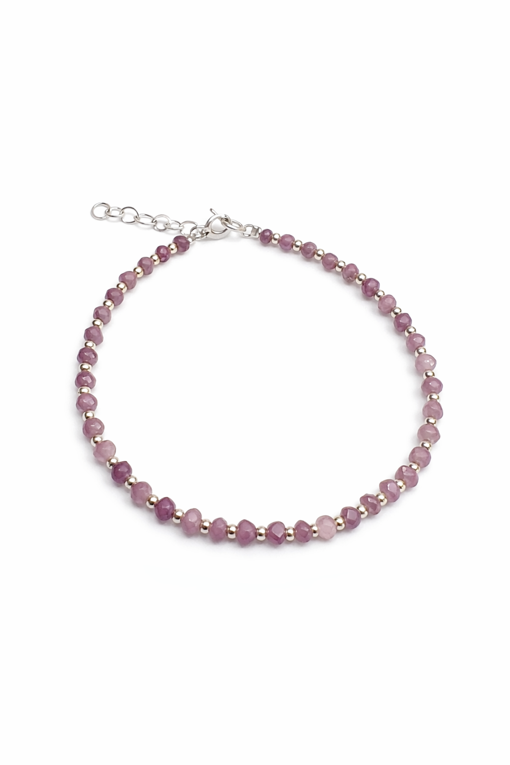 Pulsera Piedra Natural de Plata 925 Importado, con Cuarzo Rosa 4.5mm con Bolita de 2.2mm. Mide alrededor de 17 a 19cm
