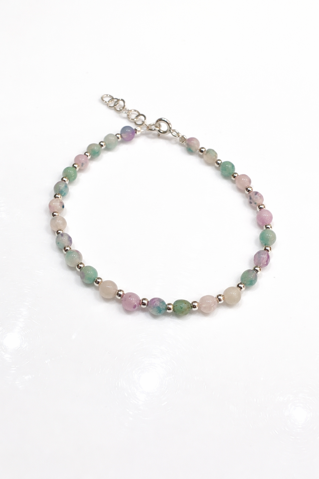 Pulsera Piedra Natural de Plata 925 Importado, con Fluorita 4.2mm con Bolita de 2.2mm. Mide alrededor de 17 a 19cm