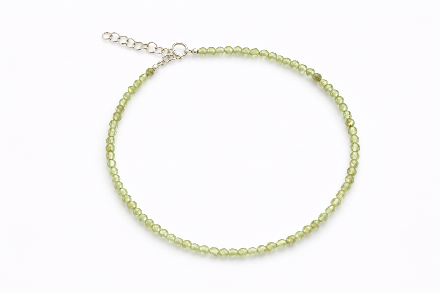 Pulsera Piedra Natural de Plata 925 Importado, con Peridiot 2.5mm. Mide alrededor de 17 a 19cm