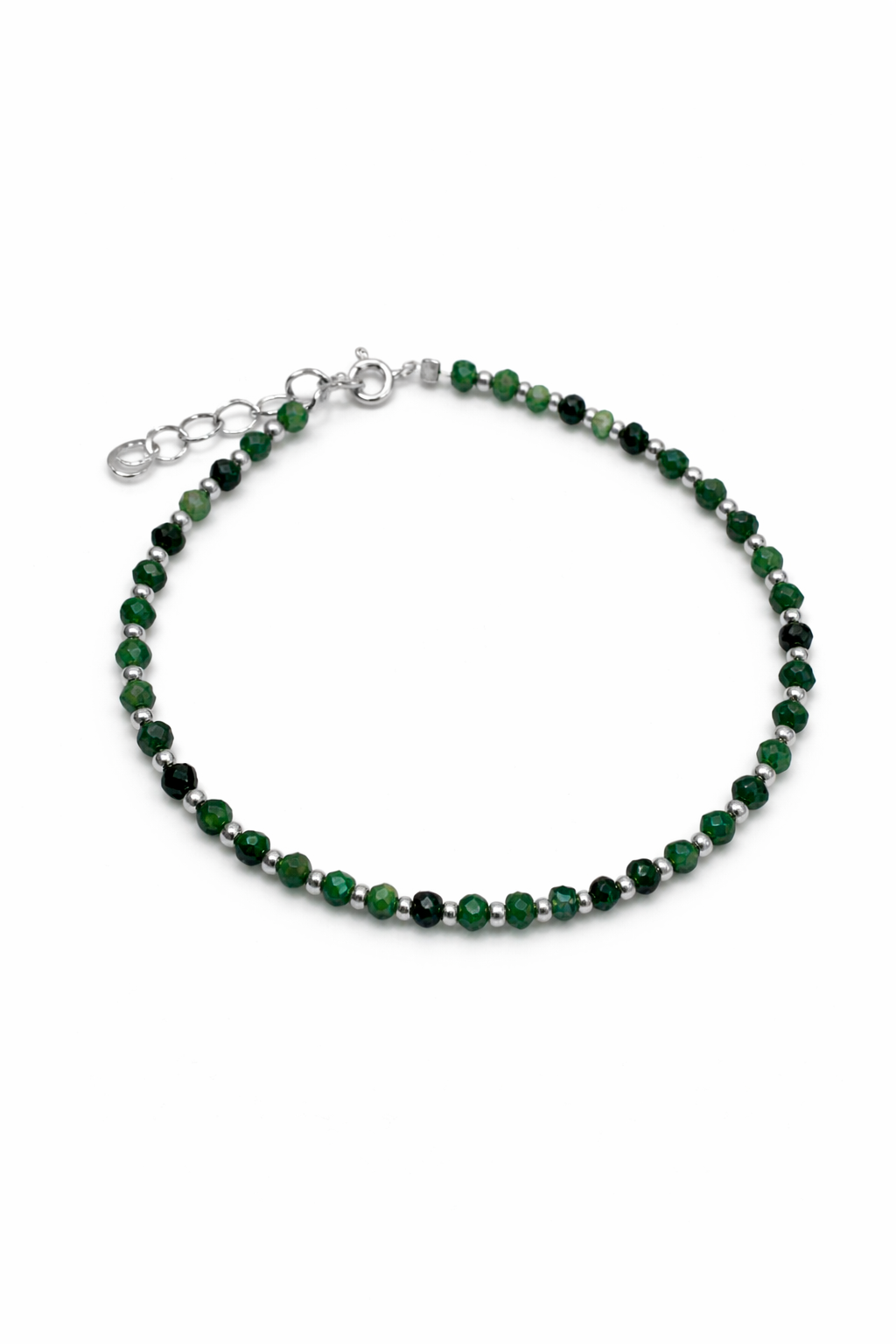 Pulsera Piedra Natural de Plata 925 Importado, con Jade Verde 3.5mm con Bolita de 2mm. Mide alrededor de 17 a 19cm