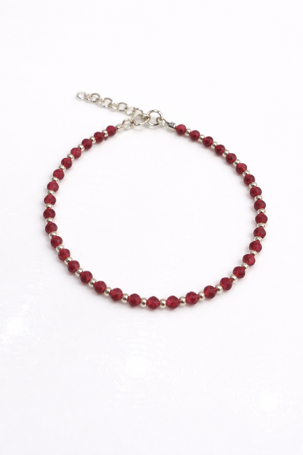 Pulsera Piedra Natural de Plata 925 Importado, con Cuarzo Fucsia 3.2mm con Bolita de 2.2mm. Mide alrededor de 17 a 19cm
