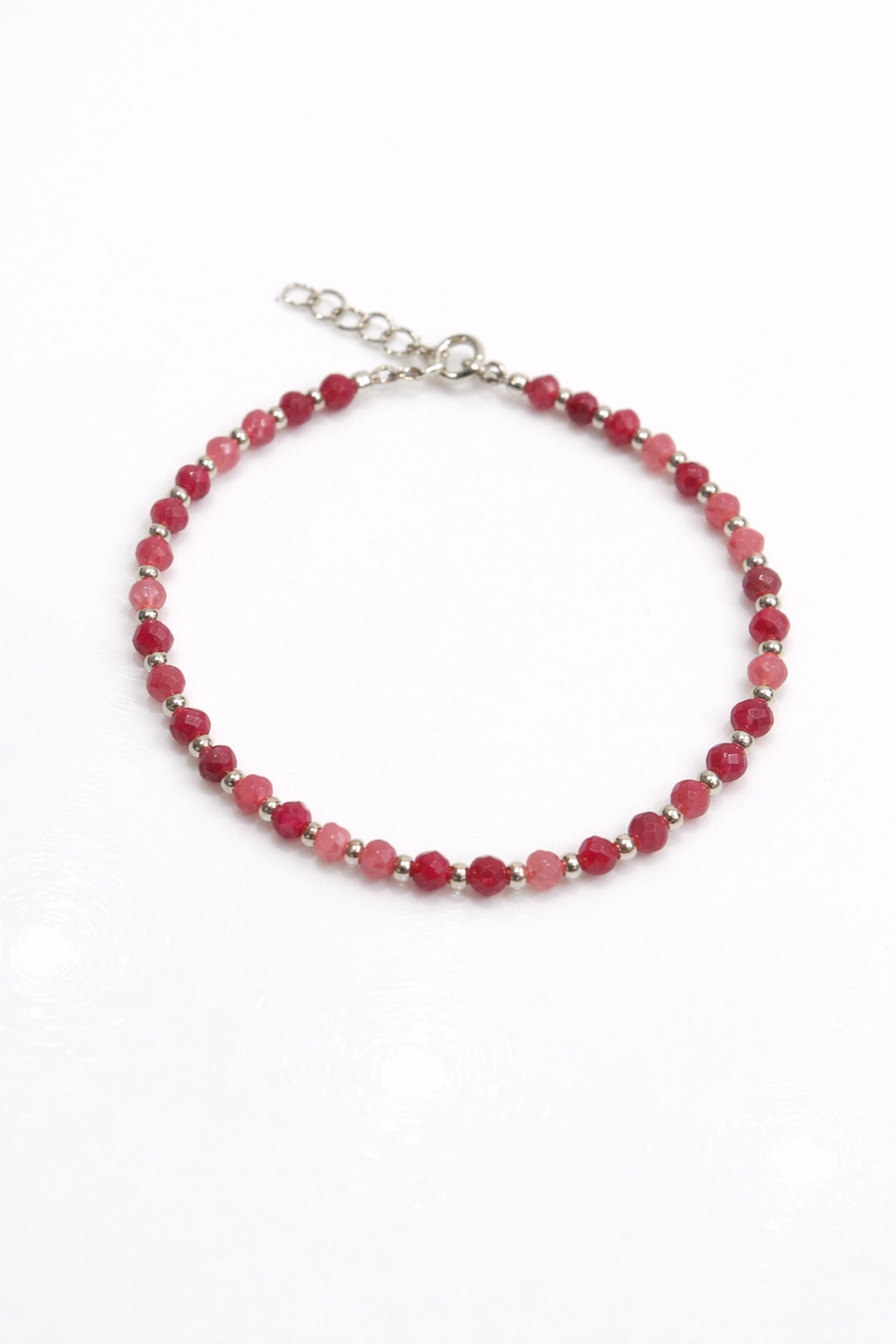 Pulsera Piedra Natural de Plata 925 Importado, con Turmalina Rosa 3.5mm con Bolita de 2.2mm. Mide alrededor de 17 a 19cm