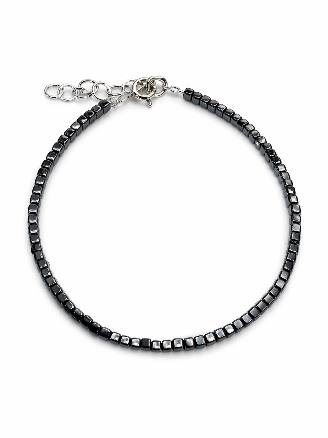 Pulsera Piedra Natural de Plata 925 Importado, con Hematite 2mm. Mide alrededor de 17 a 19cm