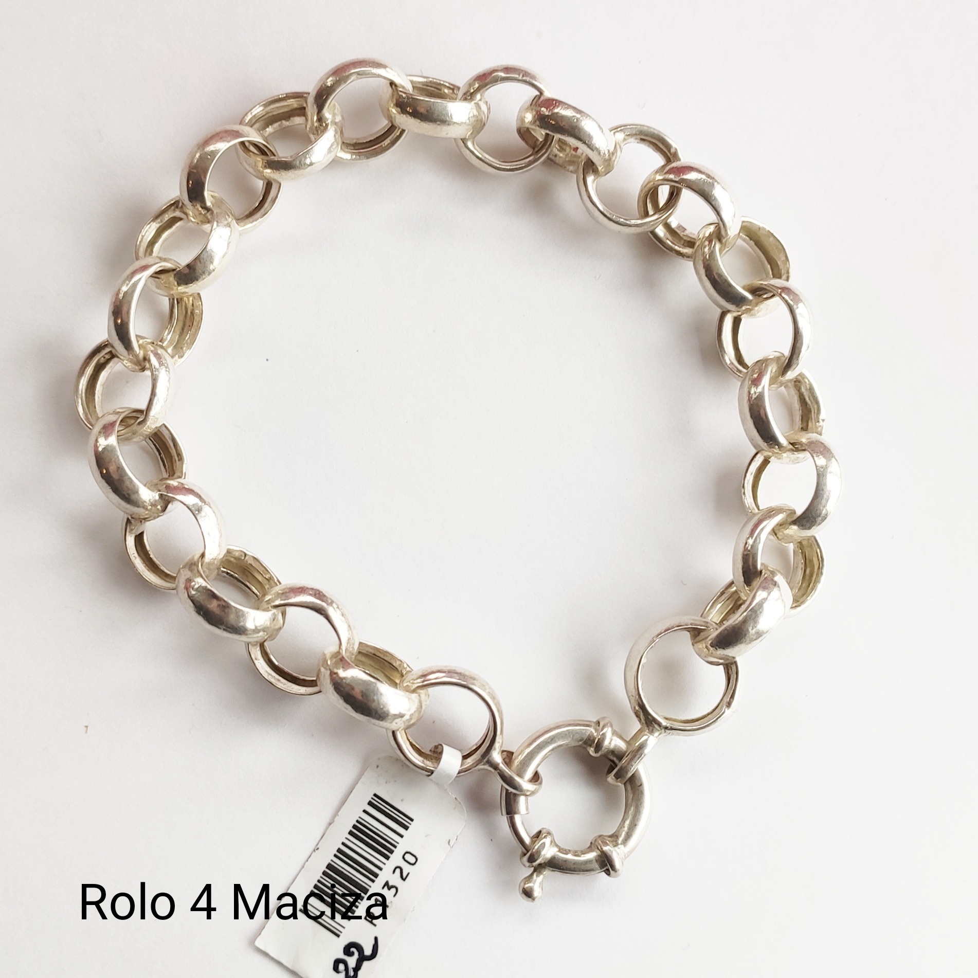 Pulsera maciza de Plata 925 en punto rolo, tiene un diámetro aproximado de 11.3mm